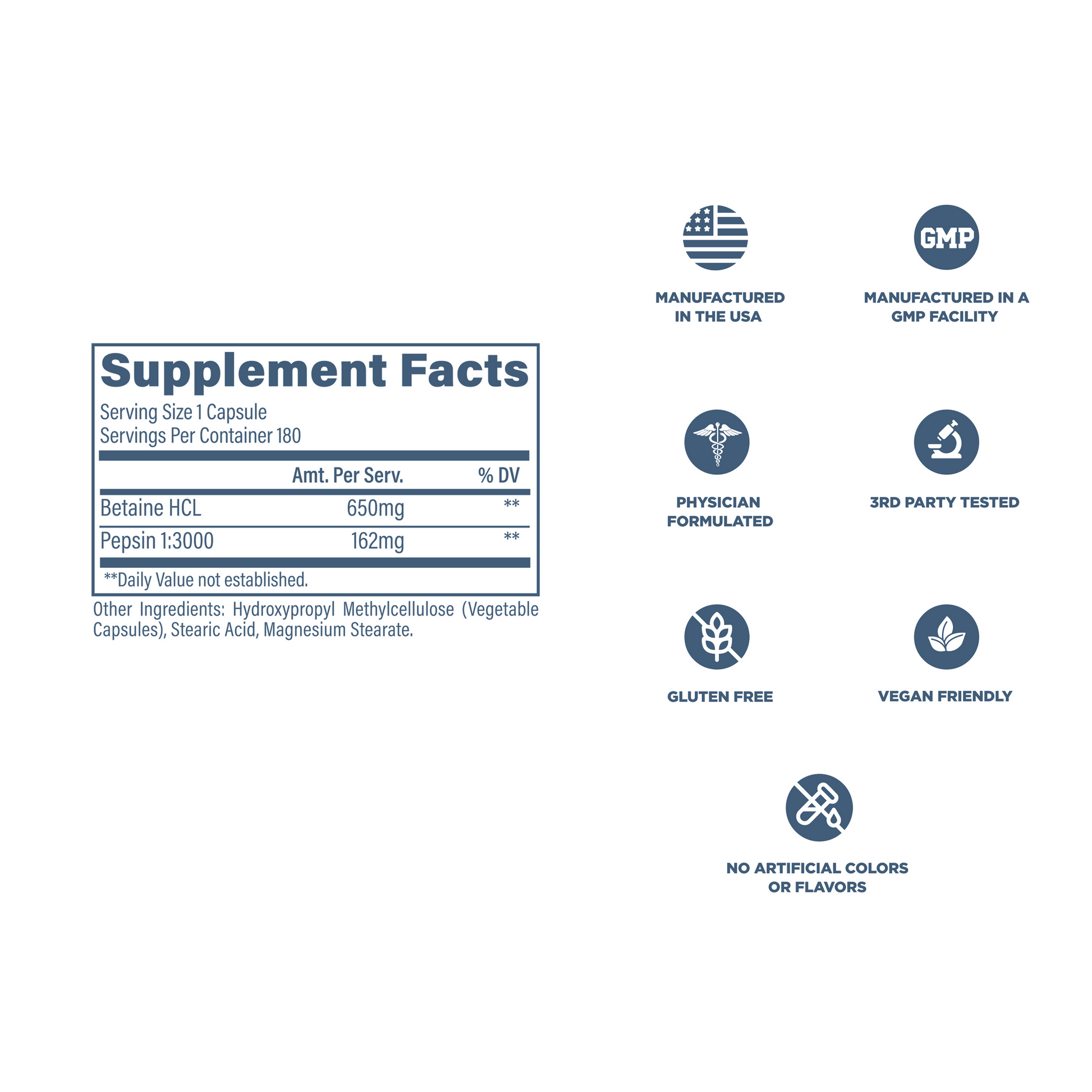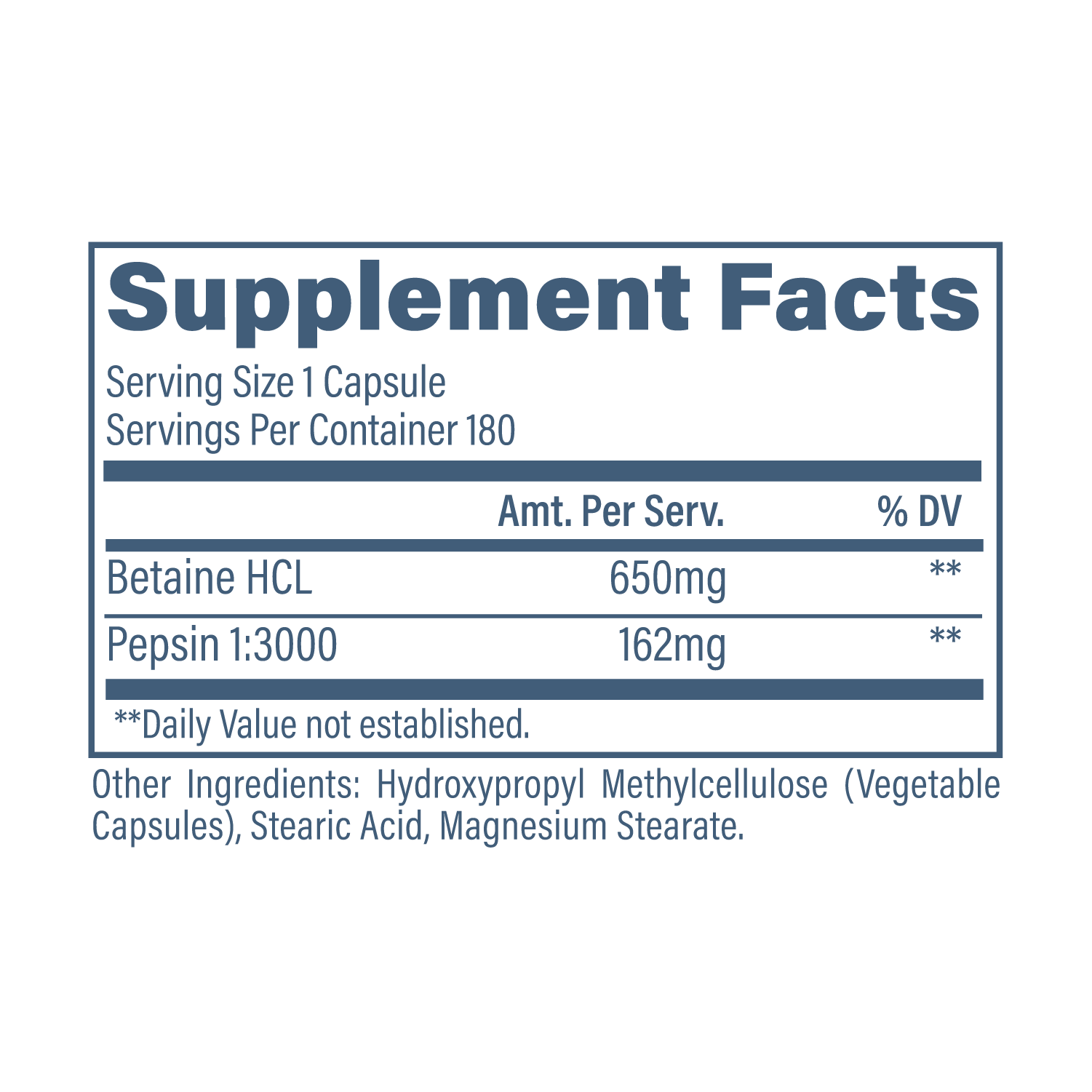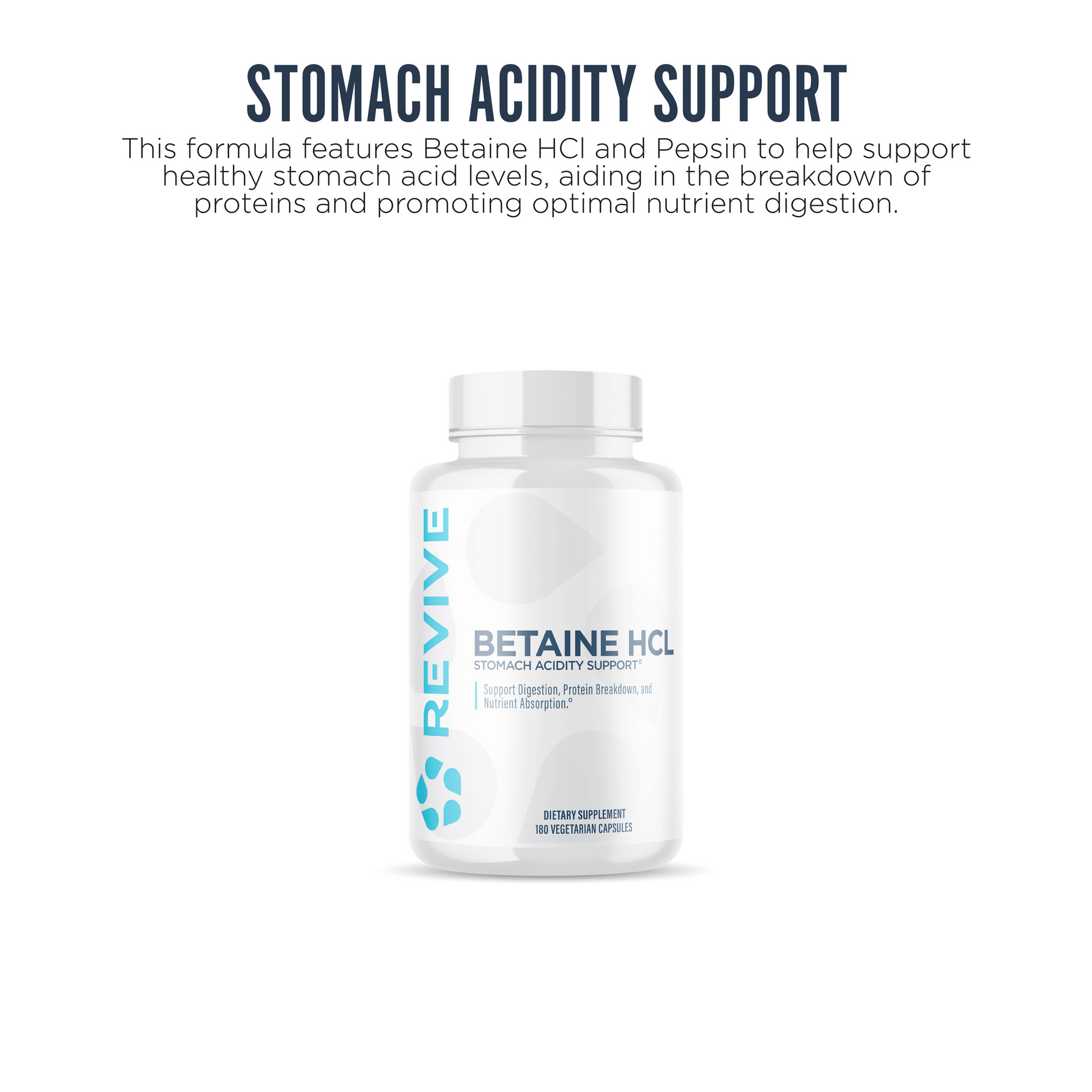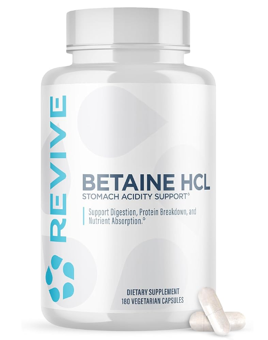 يُستخدم هيدروكلوريد البيتين (HCL) أحيانًا كمكمل غذائي يُساعد على الهضم عن طريق زيادة مستويات حمض المعدة. كما يُنصح به لدعم امتصاص العناصر الغذائية، وتحسين أداء التمارين الرياضية، وصحة الكبد.